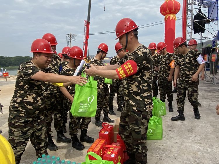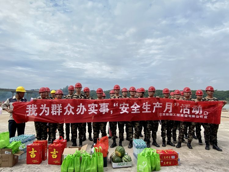 6月10日上午,项目公司安全生产领导小组紧密结合“我为群众办实事”实践活动,组织广大党员干部、公司员工前往施工现场为一线施工人员送去党史知识学习手册、安全防护常识学习手册、安全生产教育宣传册、将绿豆、白糖、银耳、王老吉、仁丹、十滴水等防暑食品、药品送到工人手中,送去盛夏清凉,确保安全施工,平安度夏。