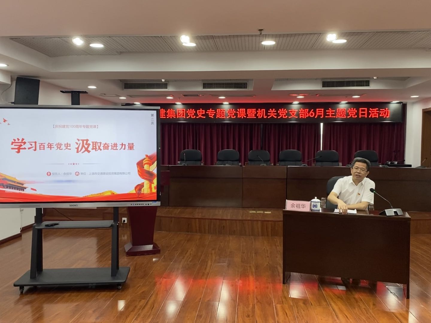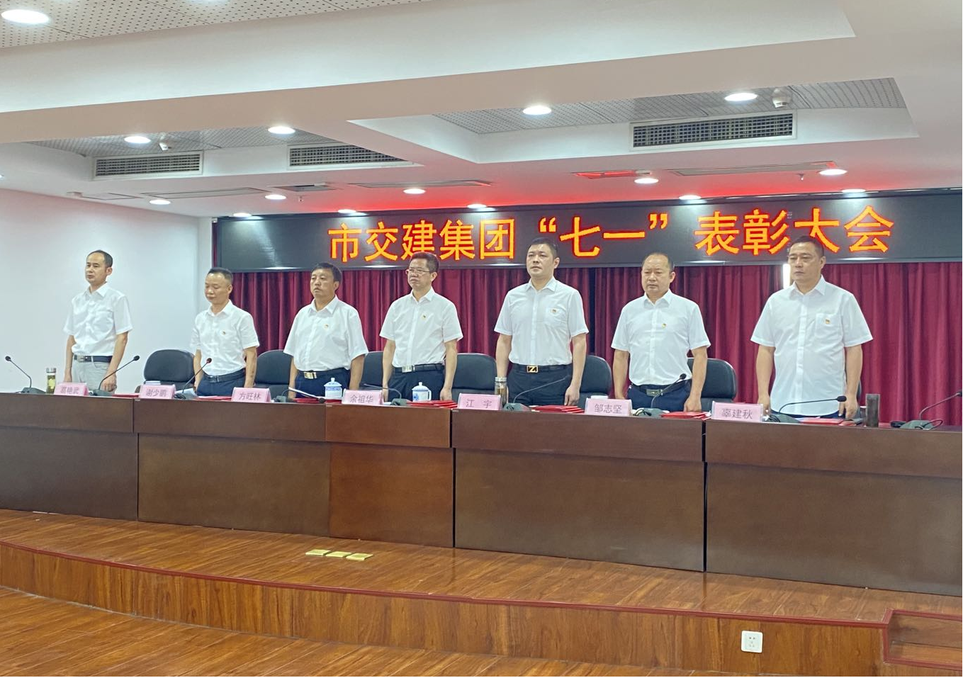 2021年6月30日上午,市交建集团隆重举行党史学习教育专题党课暨“七一”表彰大会,热烈庆祝党的100岁生日,缅怀党的光荣历史,讴歌党的丰功伟绩,表达对党的深情厚谊,表彰在过去一年中涌现出来的优秀共产党员、优秀党务工作者和先进基层党组织,动员和激励广大党员干部进一步发扬成绩、真抓实干,为集团公司高质量跨越式发展努力奋斗。集团党委书记、董事长余祖华出席并讲话。集团党委委员、副总经理谢少鹏主持会议,并宣读了对集团优秀共产党员、优秀党务工作者和先进基层党组织的表彰决定。