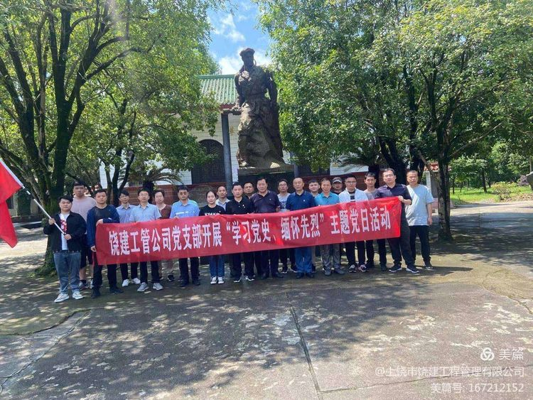 工程管理公司党支部全体党员干部职工赴横峰县葛源镇红色教育基地开展“学习党史、缅怀先烈”主题党日活动,参观了革命烈士纪念馆、在红军第五分校旧址接受传统教育。