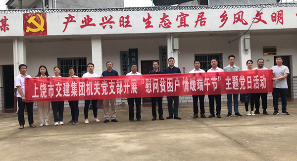 2020年6月23日端午节前夕上饶交建集团机关党支部开展“慰问贫困户 情暖端午节”主题党日活动。市交建集团在端午节前夕奔赴集团帮扶的贫困村鄱阳县珠湖乡同兴村,集团机关党支部成员们亲自己去贫困户家里慰问村里的贫困户,为贫困户们送上节日的慰问品,希望他们能过上一个温暖的端午佳节,贫困户们感受到集团对他们的关心,心里面也感到十分温暖。