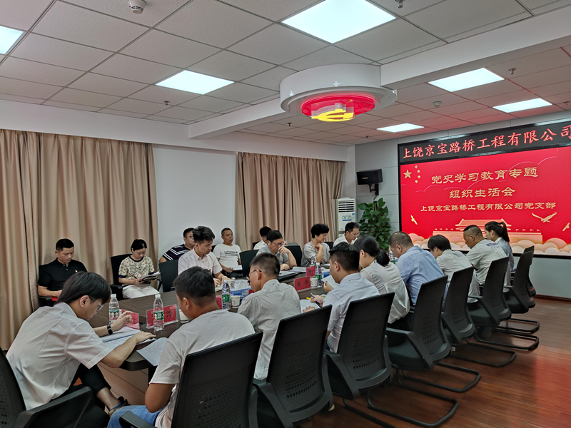 根据市委党史学习教育领导小组办公室《关于转发<关于召开党史学习教育专题组织生活会的通知>的通知》文件关于召开党史学习教育专题组织生活会的通知>精神要求,在广泛征求意见的前提下,2021年8月2日上午,上饶京宝路桥公司党支部召开了党史学习教育专题组织生活会,市党史学习教育第十三巡回指导组组长杨一虎、副组长汪丽、联络员骆飞、成员余太旺到会指导,集团党委副书记、总经理江宇与集团其他党支部书记列席。